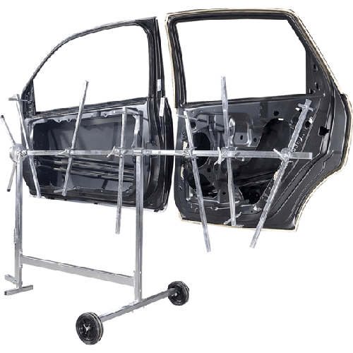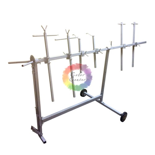 Удобный поворотный стенд  создан специально для малярного цеха. Идеально подходит для покраски как крупных деталей (бампера, крылья...) так и мелких деталей (зеркала, диски...). Имеет регулируемые держатели, благодоря чему, можно оптимально расположить детали на стенде. Имеет прочную металлическую конструкцию и колеса для удобного перемещения в цеху. Очень прочная установка для автомастерских. После завершения работы стенд складывается и не занимает много места. Может использоваться для множества задач. Является абсолютно необходимым элементом оборудования любого малярного цеха. Стенд оснащен ножками санного типа, что делают его устойчивым и он легко скользит, когда есть необходимость в перемещении.