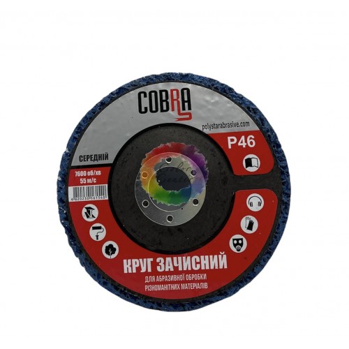 Cobra Коло абразивне д.125 зачистне синє, середня жорсткість з нетканого абразивного матеріалу - є чудовою альтернативою щіток зі скрученого дроту. Завдяки своїй відкритій структурі кола не брудниться і не нагрівається як дротяні щітки або звичайні абразиви. Він працює швидше та безпечніше, ніж щітки, особливо з твердим сплавам. Нейлонова волокно організує відкриту структуру, яка запобігає порізам і полегшує роботу при видаленні ущільнювальних покриттів, герметиків, іржі, фарби.