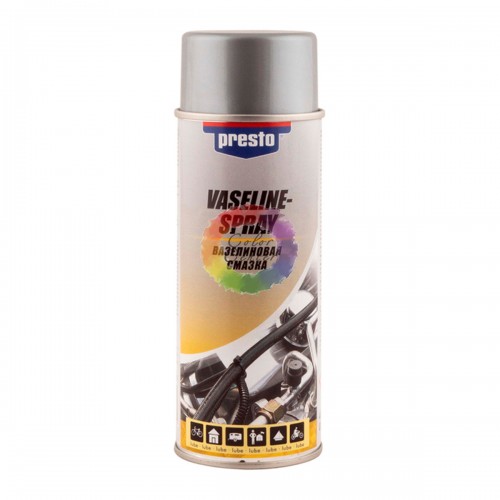 Presto Вазелиновая смазка, 400мл- это высококачественная смазка, которая используется при сборке и монтаже. Смазка Presto препятствует образованию коррозии на разъемах и винтовых соединениях, инструментах, аккумуляторных батареях, антеннах, замках.