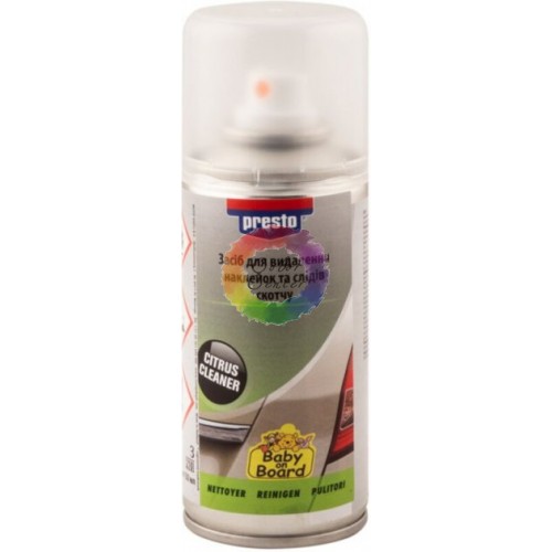 Presto Аэрозольное средство для удаления наклеек, 150мл - удалитель наклеек эффективно очищает различные поверхности от стикеров, этикеток, липких лент, прилипшей жевательной резинки. Удаляет следы от насекомых, гудрона, дегтя, смолы, смазки, пятна косметики. Исключают длительное соскабливание и применение наждачной бумаги. Растворяют следы от различных маркеров и фломастеров на гладких поверхностях. Удалитель наклеек Presto проникает под поверхность наклейки и растворяет клей, лежащий в ее основе. Не повреждает неокрашенные поверхности из меди, алюминия, нержавеющей стали.