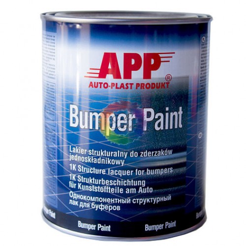APP BUMPER PAINT Структурна фарба для бамперів, чорна, 1Л Однокомпонентна структурна фарба, призначена для ремонту бамперів, молдингів, оправ зовнішніх дзеркал та інших елементів, виготовлених із пластмаси. Відрізняється гарною адгезією до відшліфованої чистої та знежиреної поверхні з пластмаси, не вимагає застосування спеціального ґрунту та засобу для передання еластичності. Накладаючи BUMPER PAINT, можна відновити пошкоджену структуру поверхні. Стійка до впливу атмосферних умов, бензину та мастил.