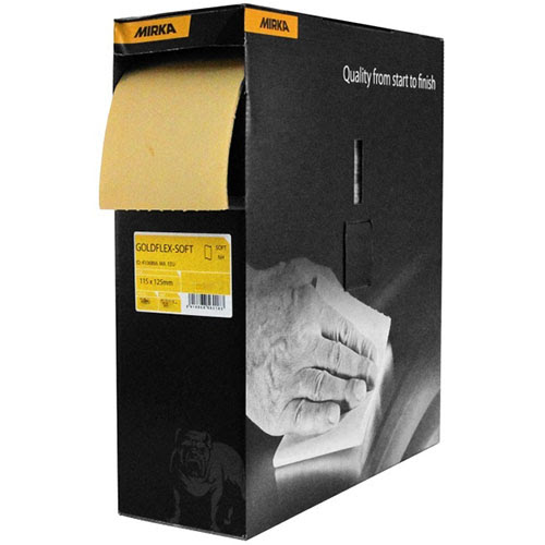 Mirka Р1000 Goldflex soft Абразив на поролоні, 115mmx1m М'який та еластичний абразив Goldflex-Soft призначений для ручного шліфування профільних поверхонь та важкодоступних ділянок. Поролонова основа забезпечує зручне захоплення і дозволяє рівномірно розподілити тиск, тим самим знижуючи ризик наскрізного прошліфування. Спеціальне покриття оберігає абразив від забивання. Призначений для сухого та вологого шліфування.