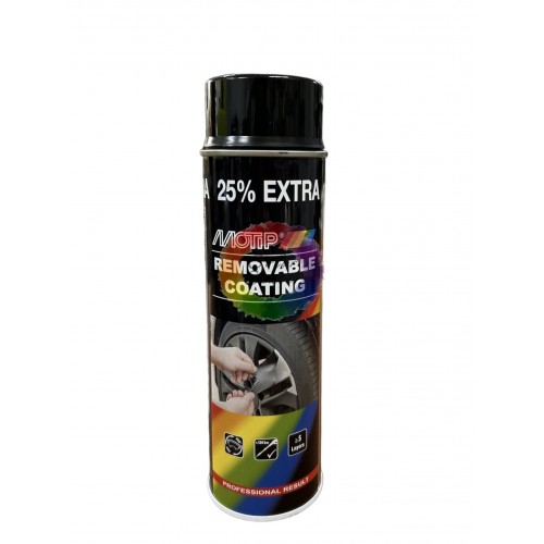 Рідка гума (фарба-плівка) Motip Removable Coating використовується для створення плівкового покриття, яке зручно в нанесенні та швидко видаляється. Може застосовуватися для покриття алюмінієвих або сталевих дисків і ковпаків, зовнішніх дзеркал заднього огляду, решіток радіаторів, спойлерів, колісних арок або інших деталей автомобілів, мотоциклів, вантажних автомобілів, мікроавтобусів, фургонів, трейлерів, велосипедів або скутерів, а також у побуті або для декоративних цілей. Наносити на гладку, неабсорбувальну поверхню (метал, алюміній, тверді пластмаси, скло).